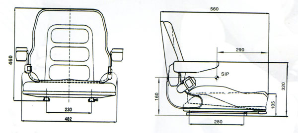座椅為叉車及其它工業(yè)車輛設計的經(jīng)濟型駕駛員座椅。它沒有懸浮裝置。但其座背、靠背均采用真空發(fā)泡一次成型技術,便于拆換。